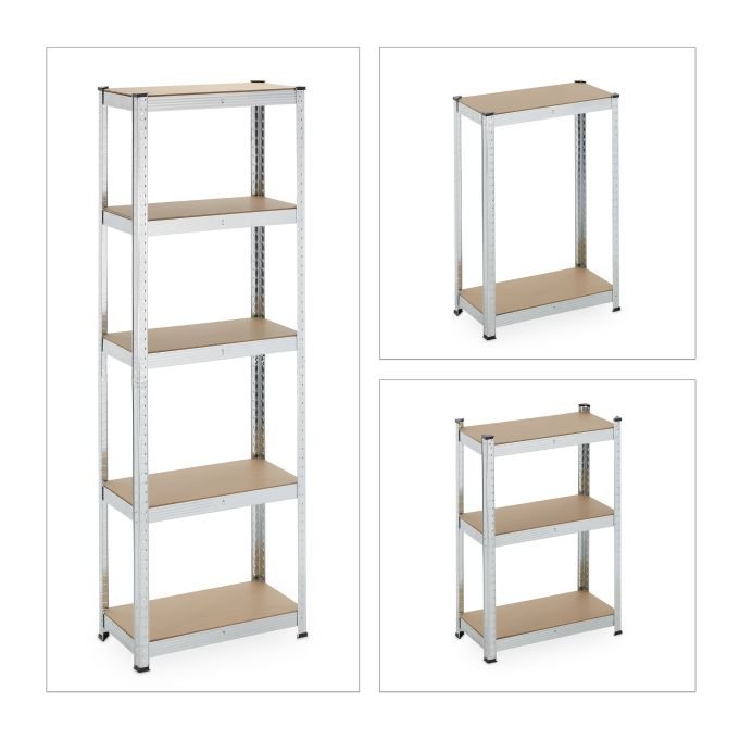 Тази тежкотоварна стелажна единица предлага стабилно и практично решение за съхранение на инструменти, каси, машини, консерви и други тежки предмети. Подходяща е за гаражи, работилници, складове, мазета и килери.