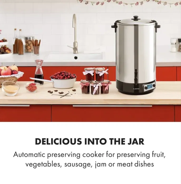 Тенджерата за консервиране Klarstein KonfiStar 60 е нашата звезда, когато става въпрос за приготвянето на домашни мармалади, собствени колбаси или интересни месни специалитети.