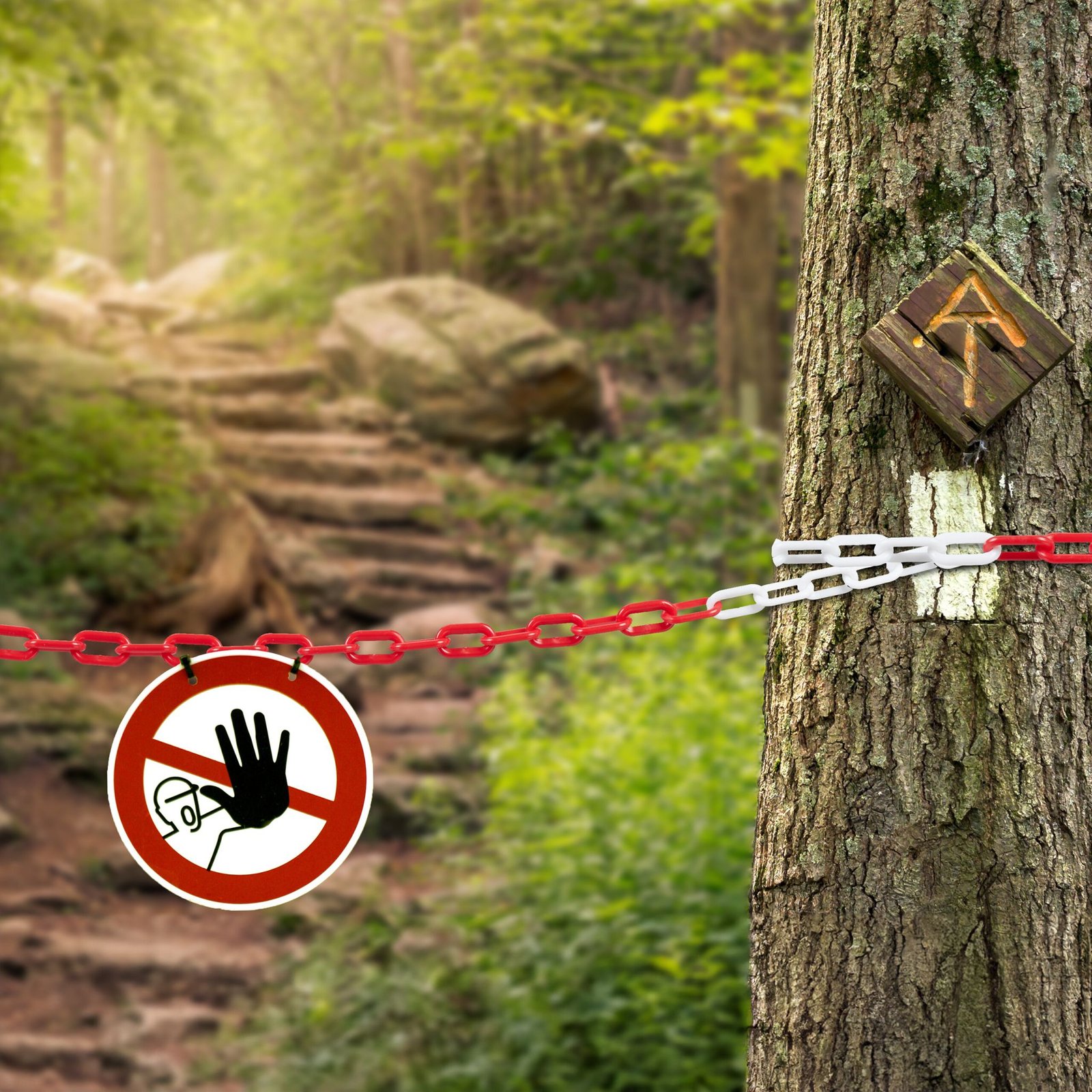 Заградителната верига в червено и бяло служи за бързо маркиране на зони, които трябва да останат ограничени.